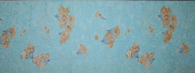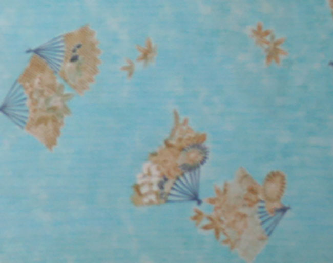 Pretty blue quality synthetic kimono bolt with traditional fan designs.