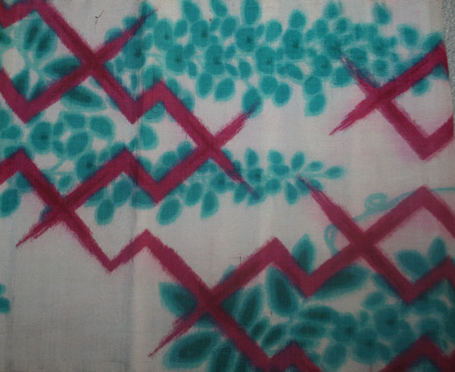 Interesting piece of grey meisen silk with abstract design.