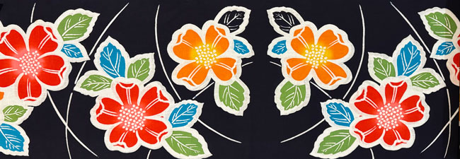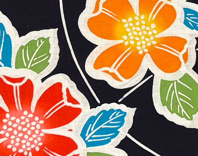 Lovely dark blue cotton yukata with bright floral design.