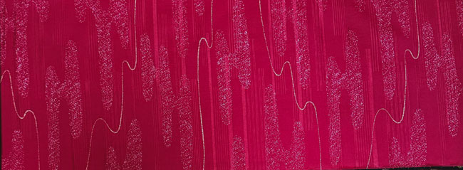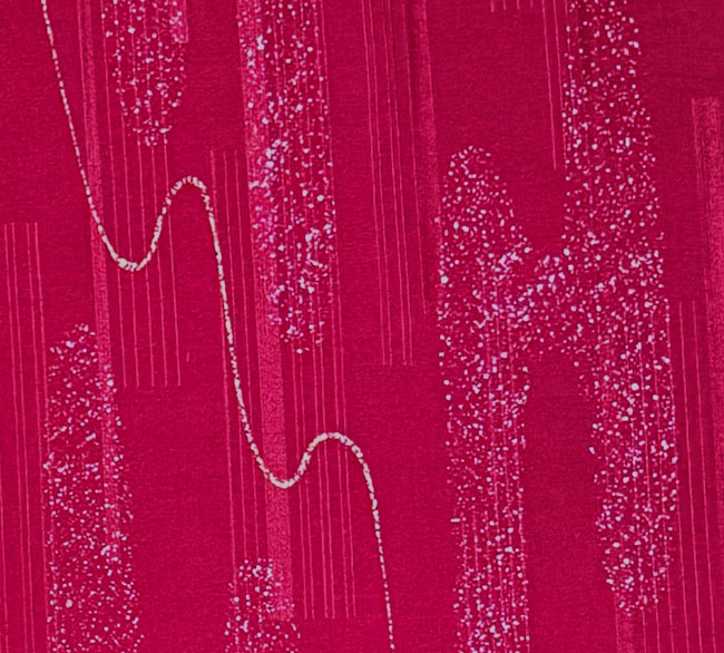 Cherry red quality synthetic kimono fabric with both woven and printed design.