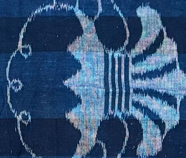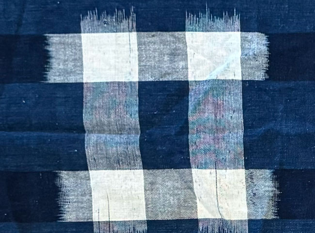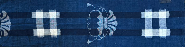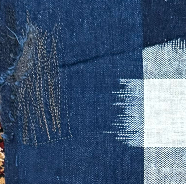 Vintage Japanese indigo dyed cotton with woven designs. Very fine and well worn but in great condition and usable. There is a small machine repair as seen in image 3.