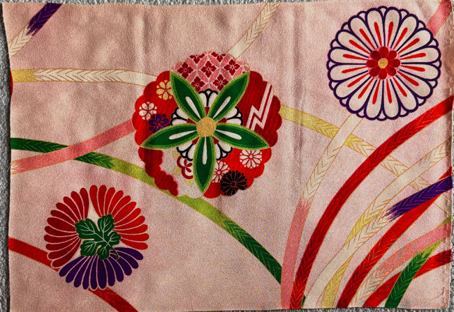 Soft pink silk with floral design.