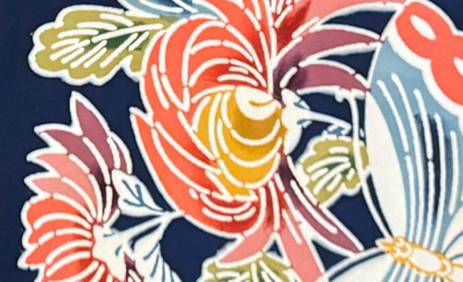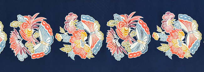 Smooth firm silk with dyed butterfly roundels. 180 inches in length of which 140 inches are patterned.