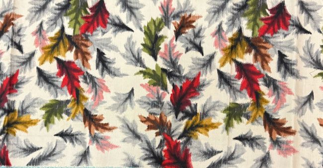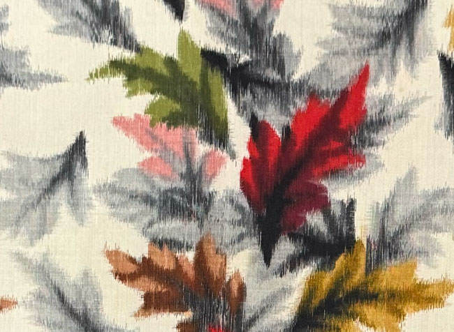 Firm meisen cream silk with..colourful woven autumn maple leaves. Reversible ikat silk.