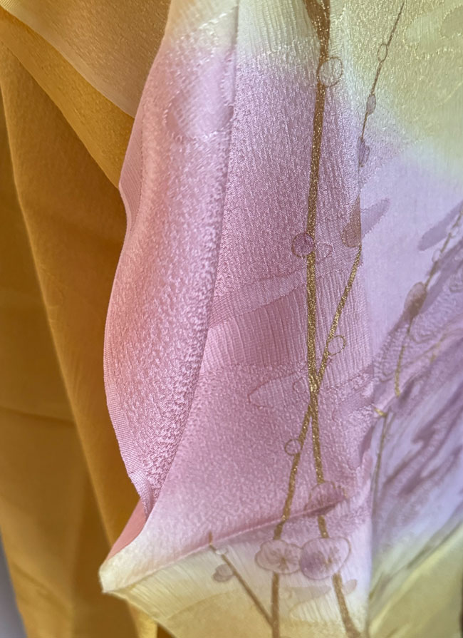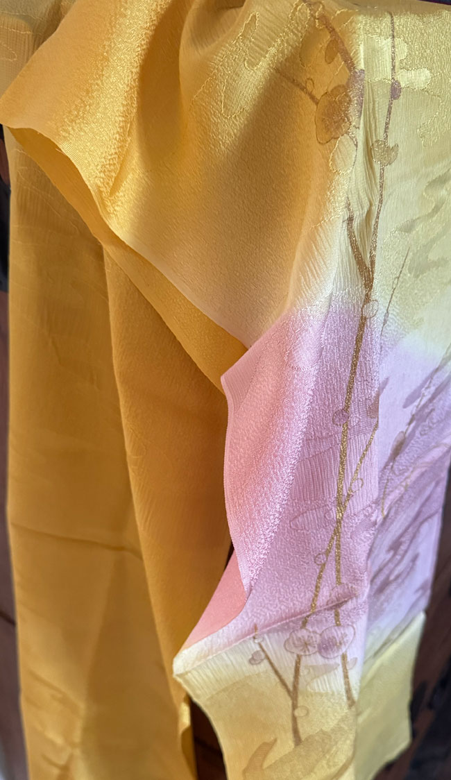 This is a beautiful new Japanese silk scarf with a subtle, yet amazing design. It is a unique and versatile piece that drapes well. It is 62 inches long and 11 inches in width.