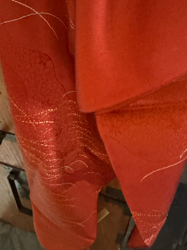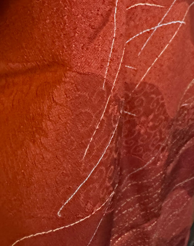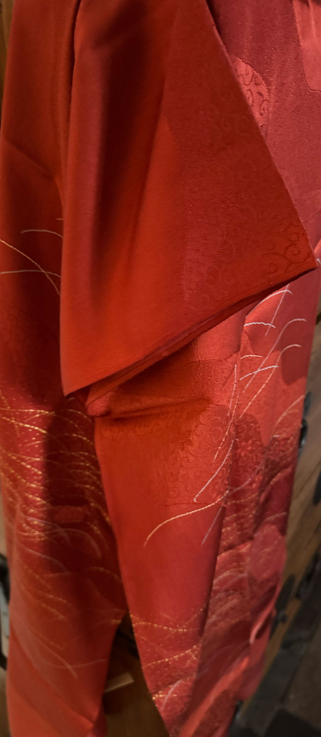 This is a beautiful new Japanese silk scarf with a subtle, yet amazing design. It is a unique and versatile piece that drapes well. It is 62 inches long and 11 inches in width.