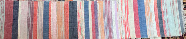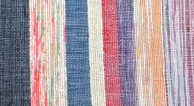 Multi-coloured hand made sakiori obi. Woven vintage cotton with fine threads and finely rolled cotton fabric strips.