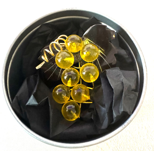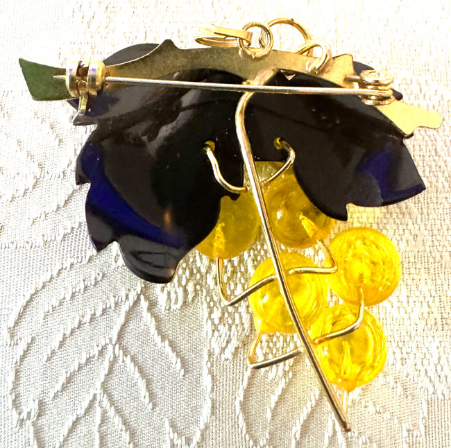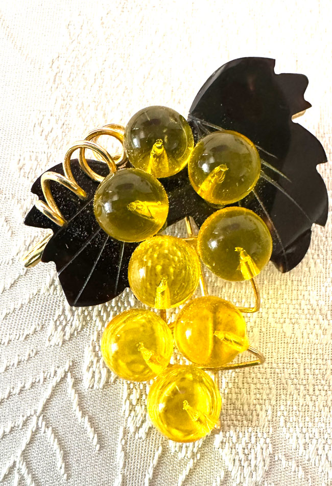 This charming and traditional celluloid vintage Japanese brooch measures about 2 x 2 inches. It comes on a strong clip and is in great condition. It comes in a presentation tin with a clear lid. This brooch can also be worn as a pendant.