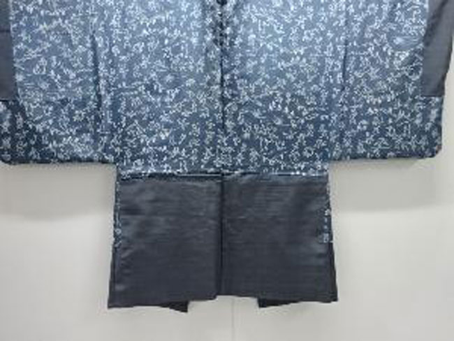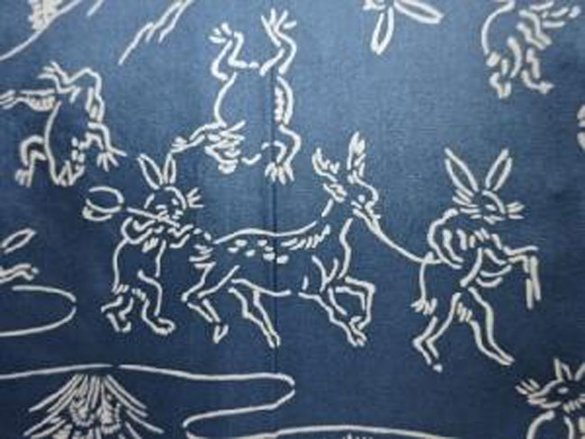 Lovely man's smooth mid-grey silk haori with silk lining featuring white rabbits, foxes, turtles and deer.