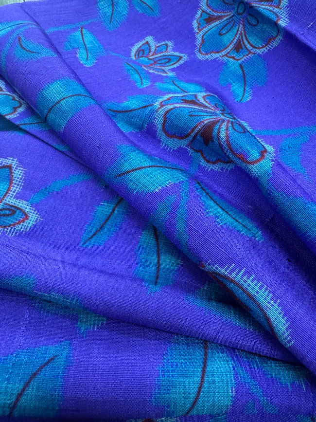 Gorgeous vintage purple/blue Japanese silk with dyed floral design.