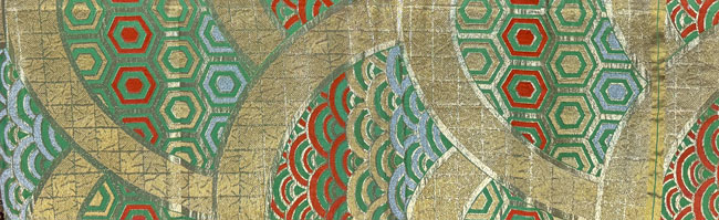 Vintage silk maru obi with traditional woven Japanese designs.This obi is in great condition. Wonderful obi for hanging, drape across a bed or to dress up a table. The front and reverse of this obi are of the same patterned fabric.