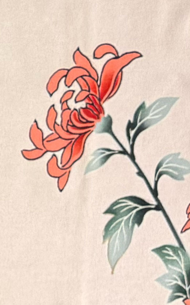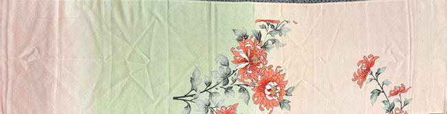 Pink/green with dyed floral design.