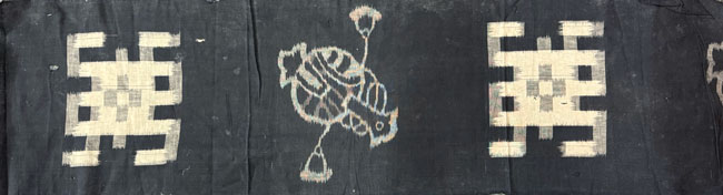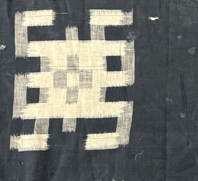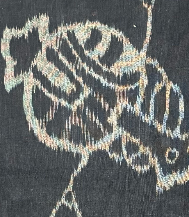 Vintage indigo cotton with woven ikat designs.