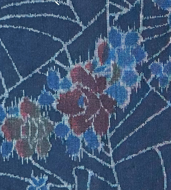 Deep blue ikat wool ( darker than the images)with subtle rose design in reds and blues.