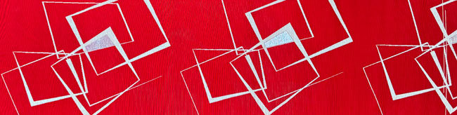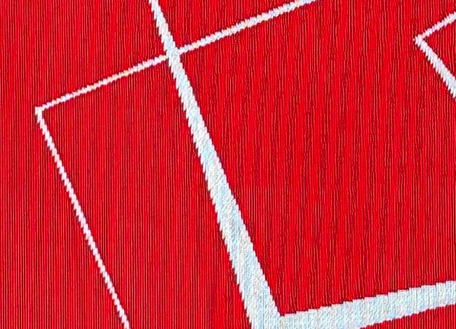 This red obi bolt has a geometric woven design in white with the occasional metallic silver woven triangle. The entire 150 inch length is patterned.