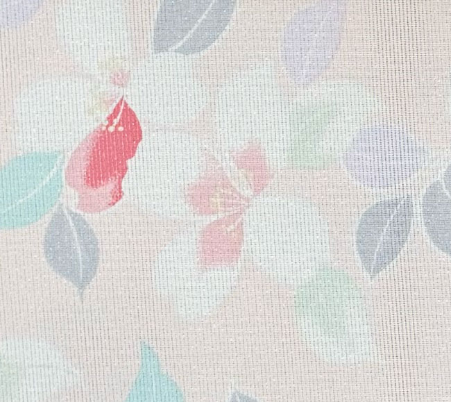Quality cream ro silk with dyes leaves. This fabric is sheer and translucent. It comes in two pieces of 4 yards each