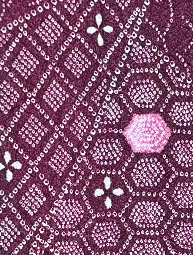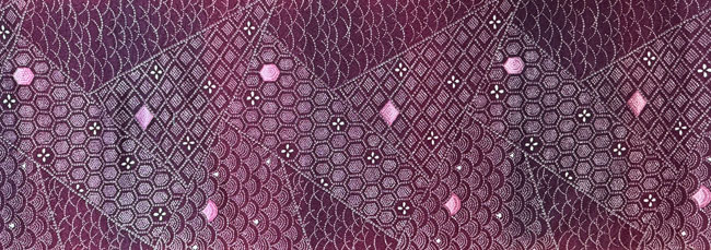 Synthetic kimono fabric with faux shibori design.