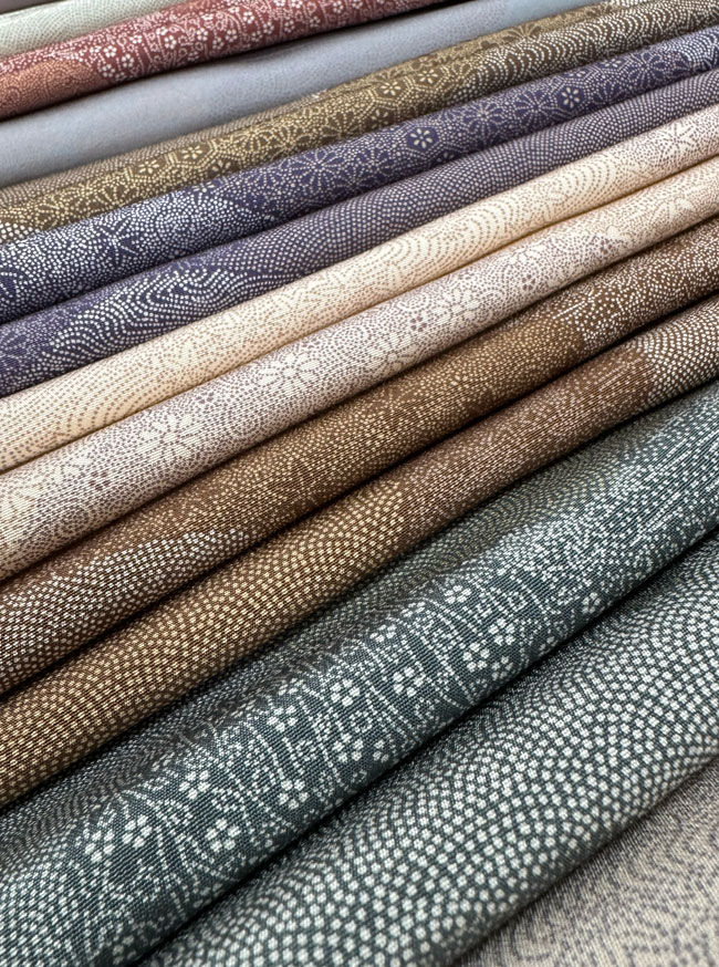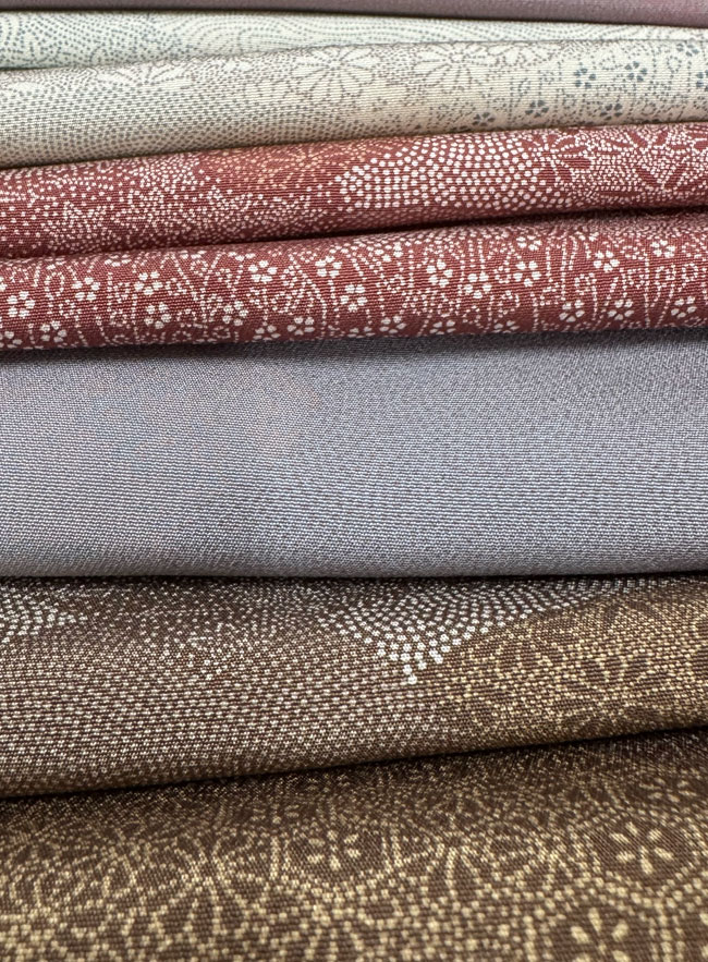 Sample bolts were a pre-curser to fabric sample books in Japan. They were produced by fabric manufacturers for shop keepers and kimono makers to show their customers to make fabric selection an easier process. This vintage sample bolt is made of a very fine silk. Each of the 13 designs is a dyed abstract or floral design based on nature and all are different. It also comes with a header and there are 13 x 20 inch different samples.The bolt is 260 inches in length. This bolt has many patchwork and quilting opportunities, would be lovely to display and would also be great for home/fashion projects.
