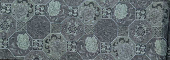 Woven mostly synthetic (16 % wool) in green tones with black.