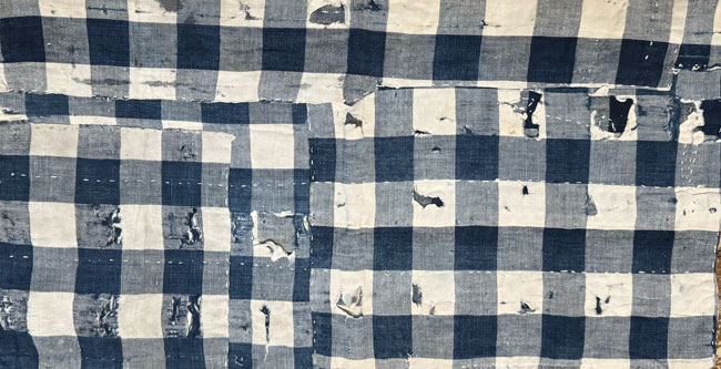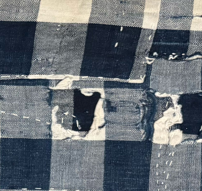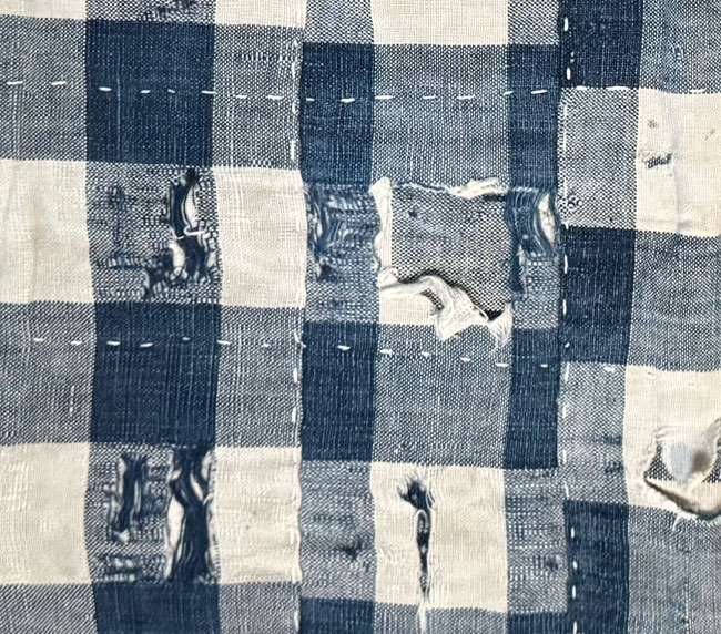 This is a small piece of genuine vintage boro cotton with repairs.Image 3 shows the reverse of the entire piece.
