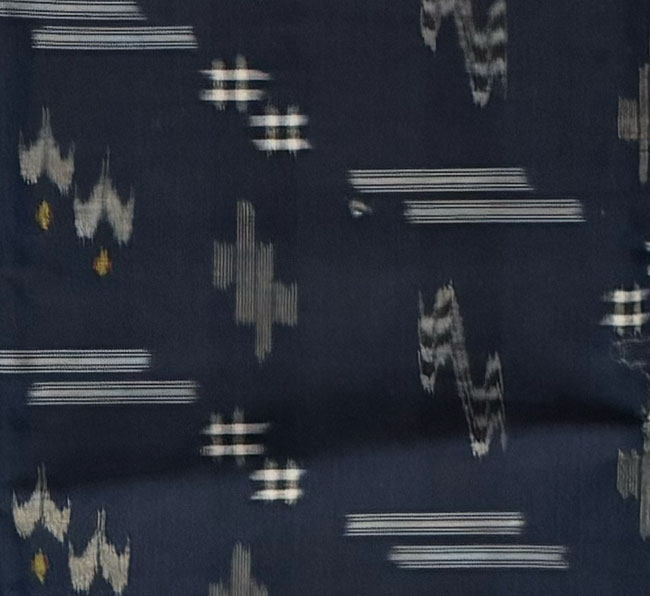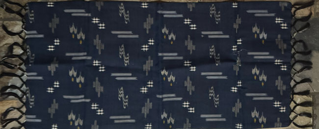 Deep blue ikat cotton table runner which is both lined and fringed. Measurements do not include the fringing.