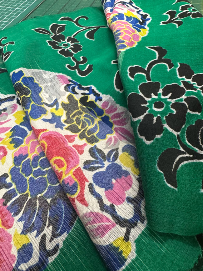 Meisen silk piece with woven ikat floral design. Fully reversible.