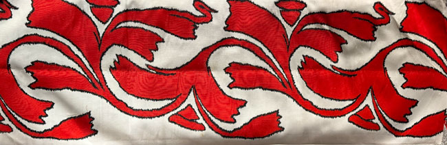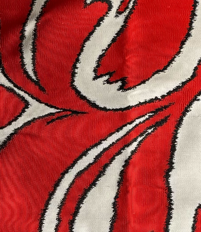 Cream obi off-cut with woven abstract design in red and black.
