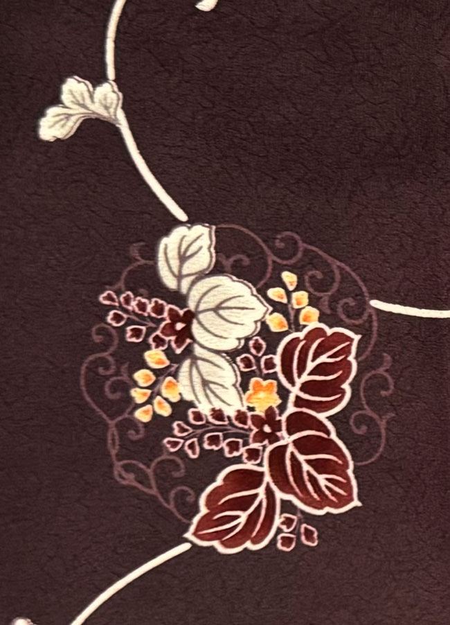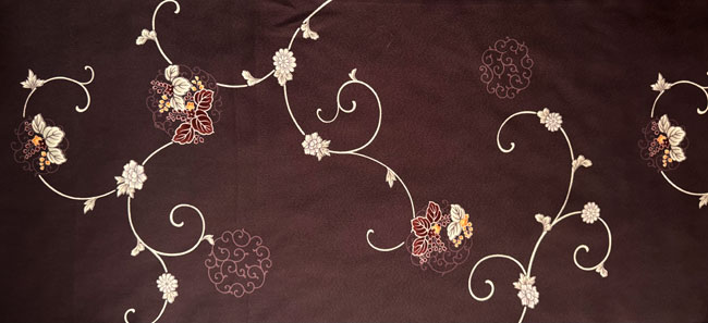 Brown silk crepe with all over subtle woven design and dyed floral design..