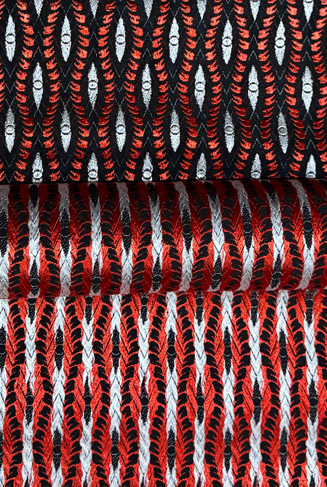 heavy woven stiff silk obi bolt. This bolt is reversible and unused and the entire length is patterned.