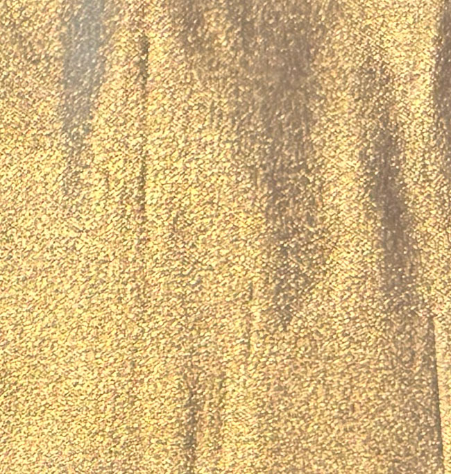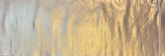 This silk obi is woven in beautiful metallic gold thread with no pattern. Typically, about 70% of the front is patterned and the remainder consists of cream silk. The reverse is also a cream silk. It would look terrific as a wall hanging, a table runner or across the end of a bed. This obi does not have a stiff inner core.