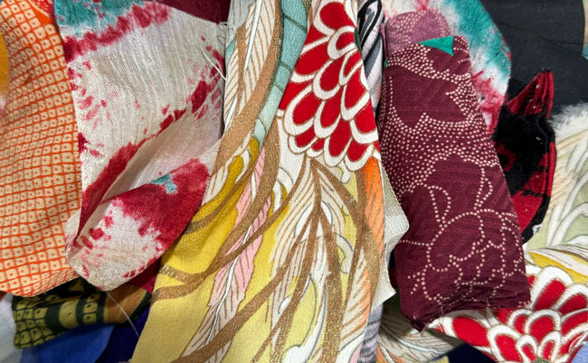 Bundle of small pieces of mostly kimono silk suitable for trims, appliques and small projects. Average weight of these little bags is about 100g.