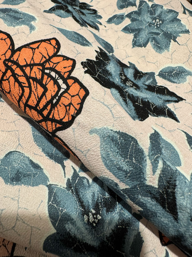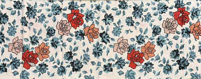 Vintage double width cotton blend with dyed roses. The full length image only shows half of the width.