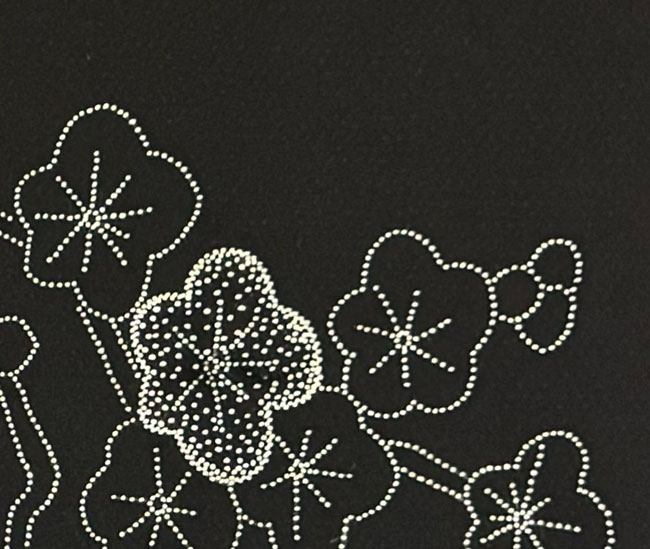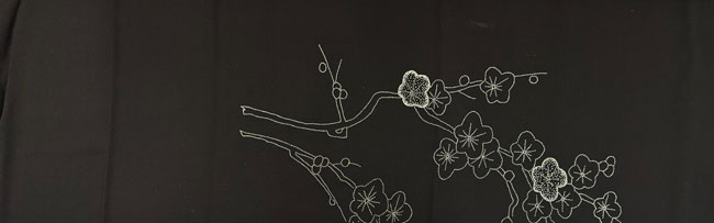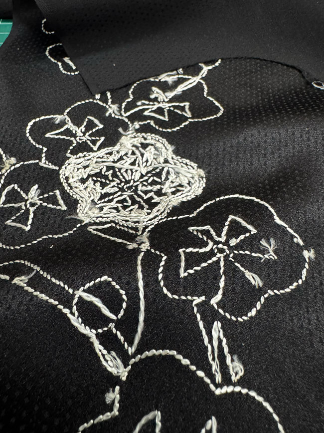 Soft black silk piece with hand embroidered design. Detailed image shows reverse.