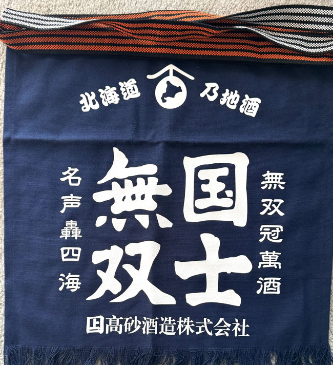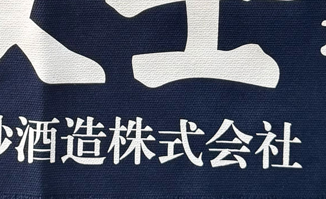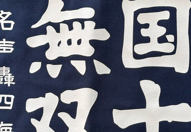 Japanese Advertising Indigo Cotton Apron Workers Maekake with kanji and long woven cotton ties.