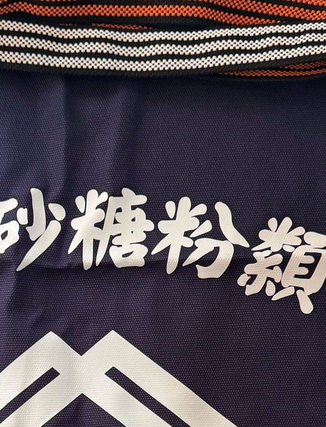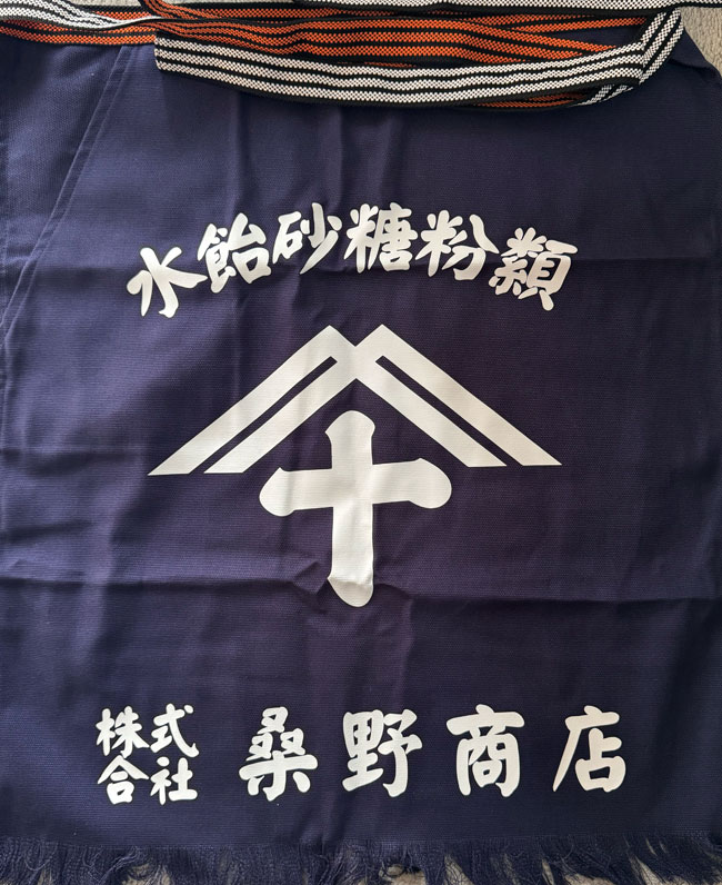 Japanese Advertising Indigo Cotton Apron Workers Maekake with kanji and long woven cotton ties. This rather large apron also has an apron.