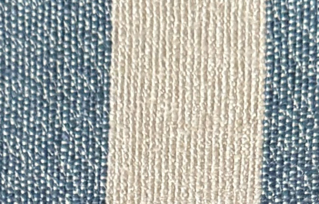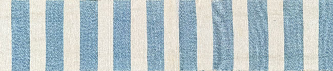 Mid blue and cream coloured hand made sakiori obi. Woven vintage cotton with fine threads and finely rolled cotton fabric strips.
