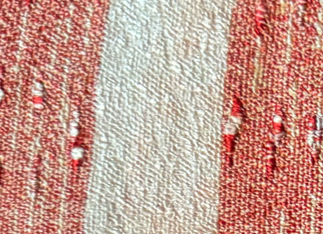 Orange and cream coloured hand made sakiori obi. Woven vintage cotton with fine threads and finely rolled cotton fabric strips.