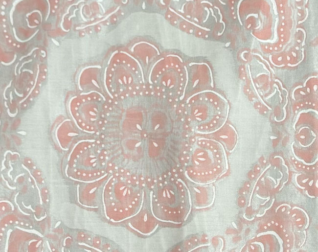 Soft lightweight silk with pink and grey abstract design. suitable for linings.