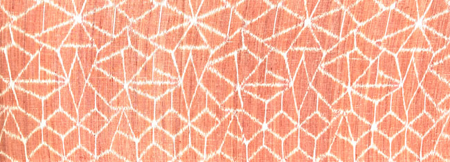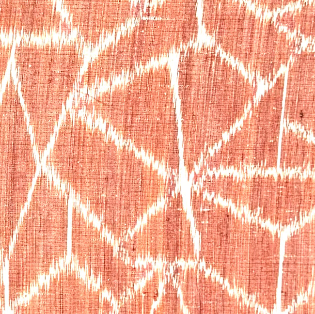 Textured apricot coloured silk with woven abstract design. Reversible ikat.
