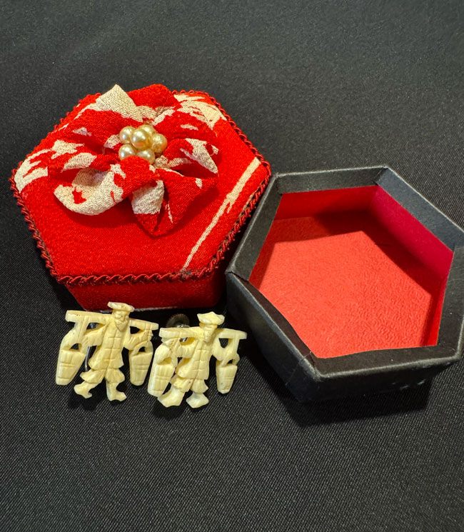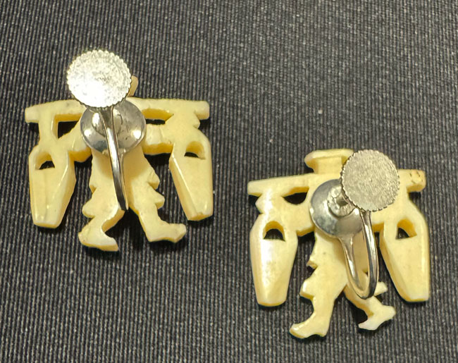 Beautiful vintage pair of screw on hand carved bone earrings. Approximately 0ne inch in diameter and comes boxed as shown.